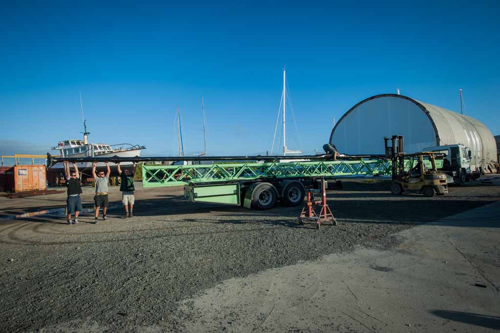 Big Black Erection-3797 Published October 17, 2014 at 1024 × 681 in The Big, Black Erection. The boys lifting the mast off the trailer- it took five of them.