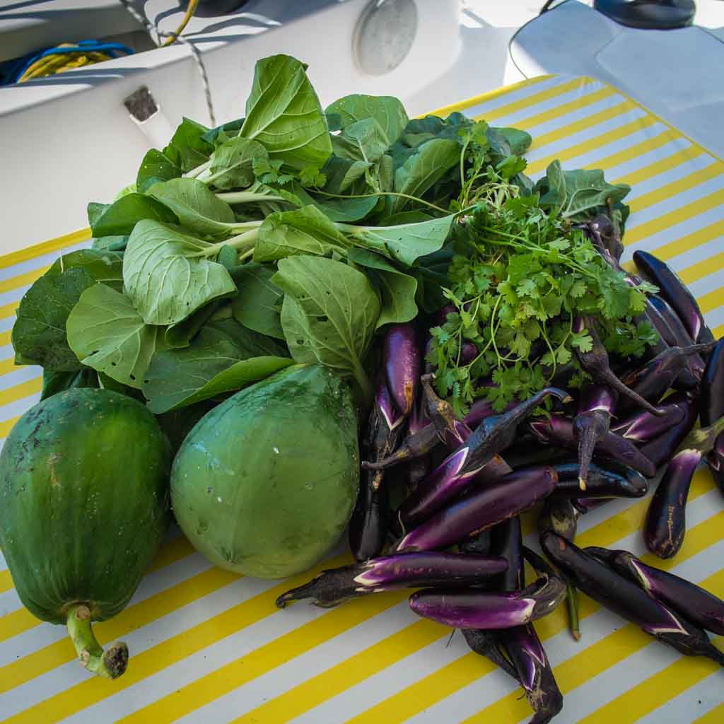 On the way home, we stopped at Joe’s uncle’s farm and I helped him harvest big basin-fulls of eggplant, bok choy and coriander, in anticipation of heading into the wilds of the Southern Lau Group, where we don’t expect to be able to source any provisions at all.