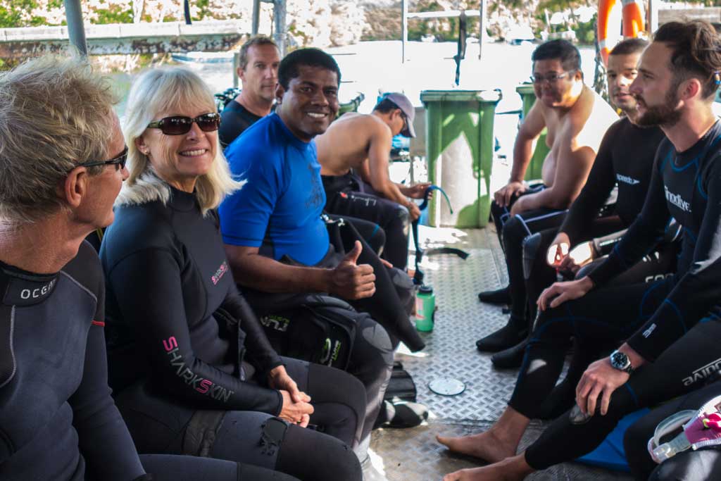 That’s because the originators of the dive negotiated with the local Fijians to establish a marine sanctuary, with monies from dive tourism going to the villages. There has been no fishing here since 2004 and, as a result, there are more fish here than we’ve seen anywhere else in the country.