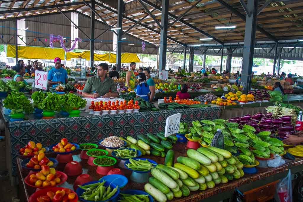 Trouble was, there was nothing available ‘ashore’ at Vuda Point. So while Damian stayed on board, Verdo and I jumped in a taxi and headed for Lautoka, 30 minutes away. We started at the market, where the fruit and veg were spread over a couple of acres. From half a dozen different stallholders, we piled up pawpaws, bananas, potatoes, beans, bok choy, tomatoes, lettuce, cucumber, and whatever else we could find – the variety wasn’t huge, but with a bit of picking and choosing, the quality was great.