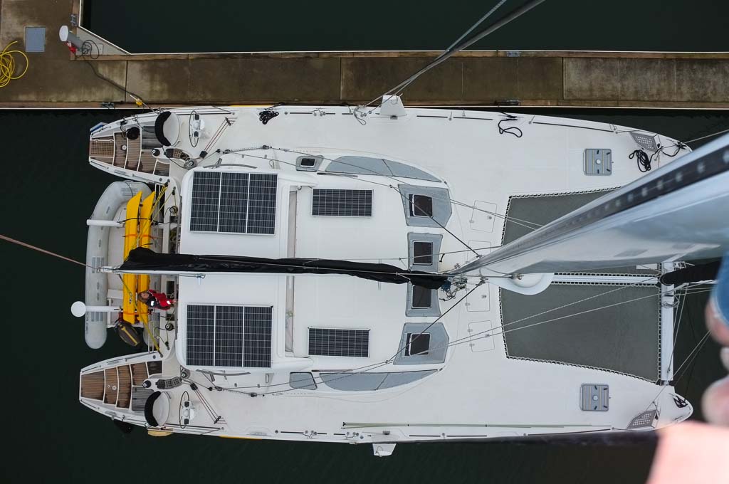 We had a ‘copper coat’ anti-fouling that was supposed to be good for 10 years, but it clearly wasn’t working very well. That, or it just wasn’t applied correctly. Either way we decided to sand it back and apply an abrative anti-foul to the bottom of both hulls. The sanding of the copper coat alone took four days!