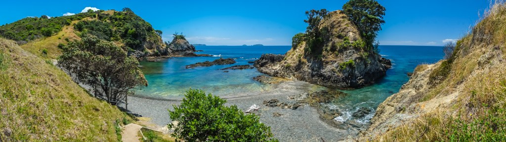 Walking on Waiheke-1600 Waiheke Island – 45 minutes by ferry from downtown Auckland in the Hauraki Gulf – is known for its boutique wineries. But even better than its fine wines is the network of 100 or so kilometres of walking trails, collectively known as Te Ara Huru. We spent January cruising the Hauraki Gulf islands, with much of our time on Waiheke. We covered most of the western half of the island’s walking tracks, in addition to the Stoney Batter walk (on the far eastern side) on New Years Day.